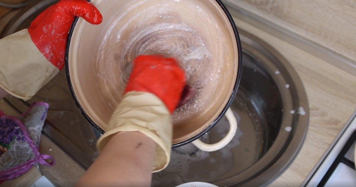 После того как раствор подействует, вам потребуется протереть поверхность с помощью губки или мягкой щетки. Не используйте абразивные материалы, чтобы не повредить эмалевое покрытие. Тщательно промойте поверхность водой, чтобы удалить остатки содового раствора.