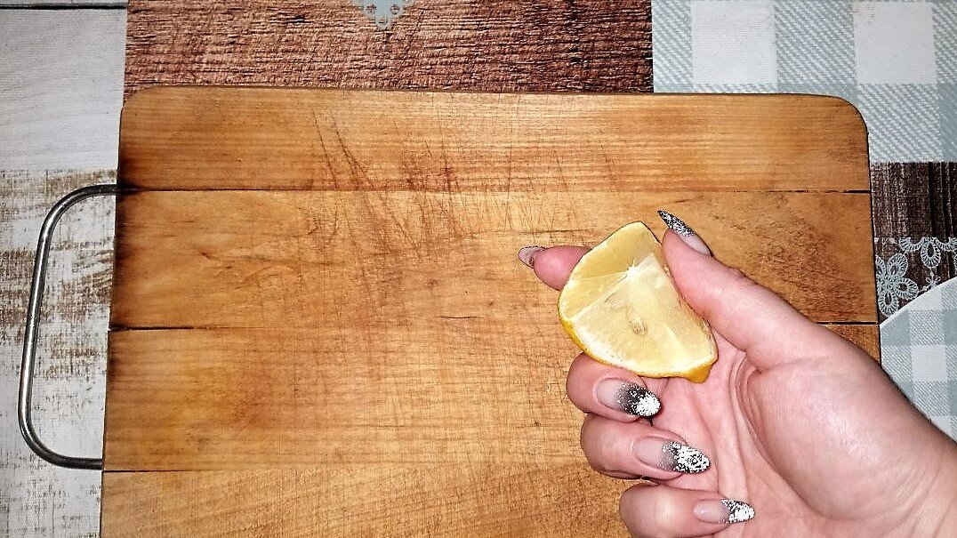 - Соль и лимон: Посыпьте доску солью и выжмите на неё сок лимона. Используйте половинку лимона, чтобы еще раз протереть поверхность доски. Соль и лимон помогут устранить запахи и дезинфицировать доску.