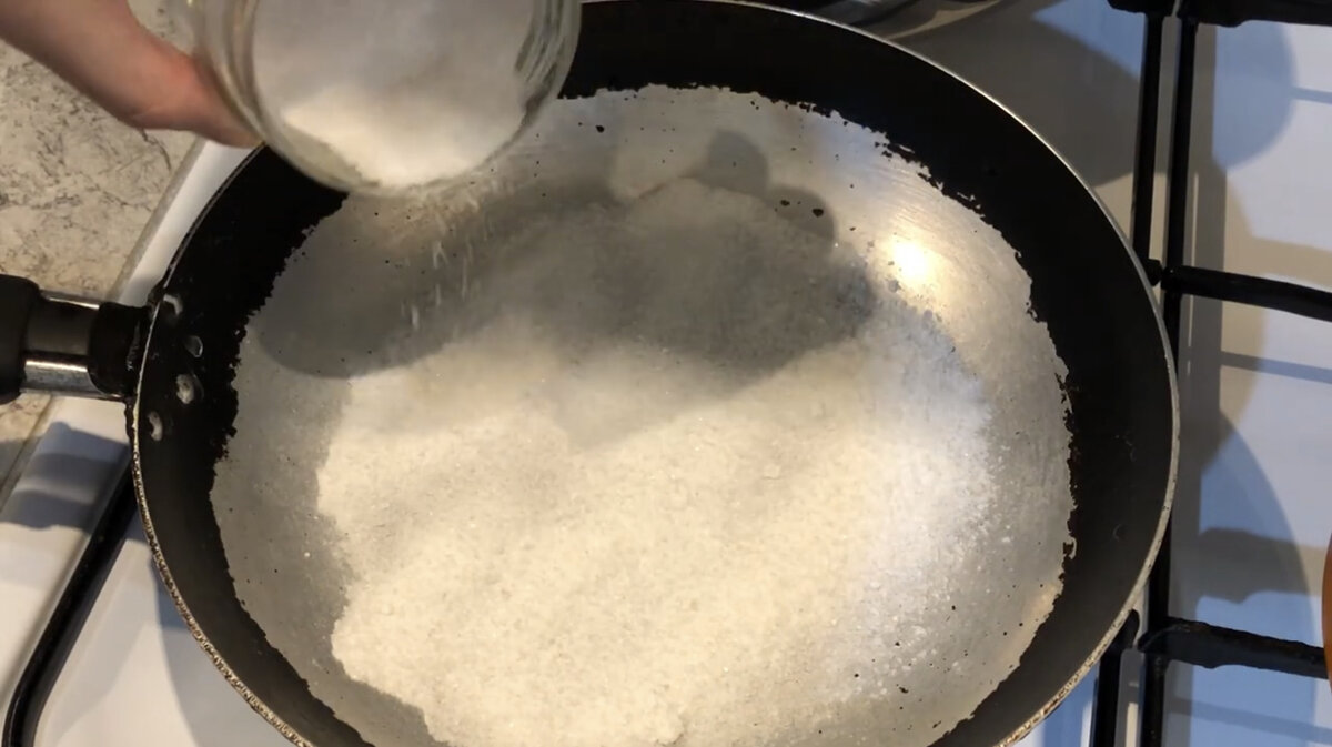 - Промойте сковороду теплой водой, чтобы удалить все остатки соли и льда.