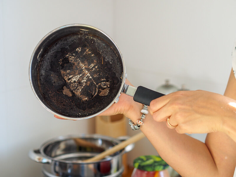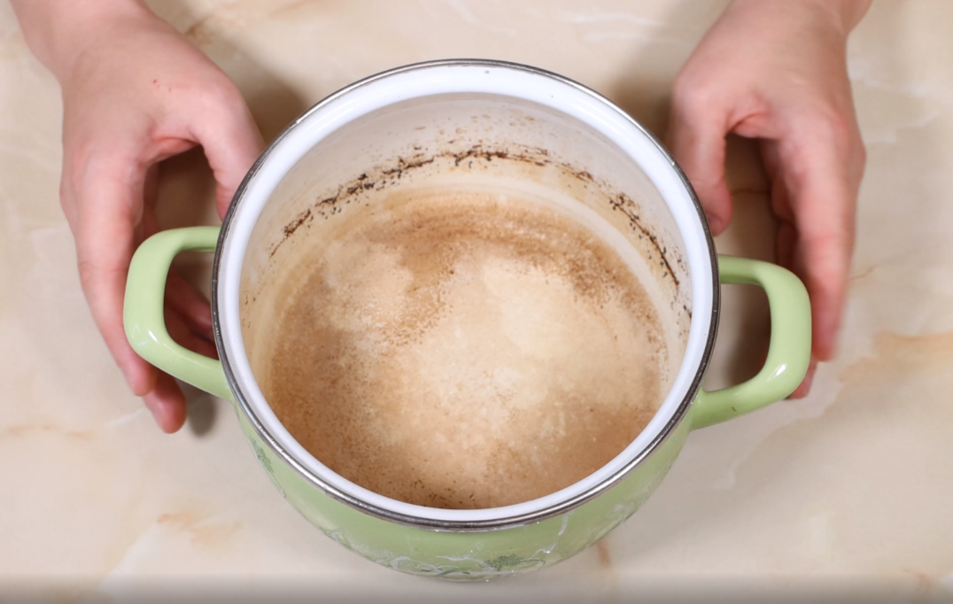 - Смойте кастрюлю теплой водой и высушите ее полотенцем или на воздухе.