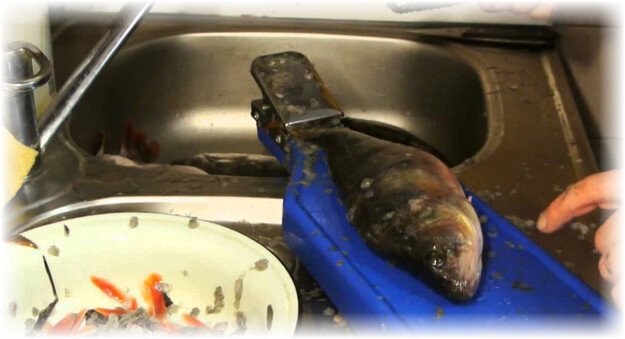 - Метод с использованием кипятка. Для этого метода необходимо подготовить кипяток в большой емкости. Рыбу опускают в кипяток на несколько секунд, после чего быстро вынимают и охлаждают в холодной воде. Затем шкура и чешуя окуня легко удаляются с помощью ножа или рук.