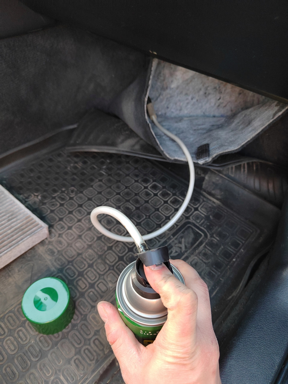 - Продукт для очистки кондиционера, который можно приобрести в автомобильных магазинах