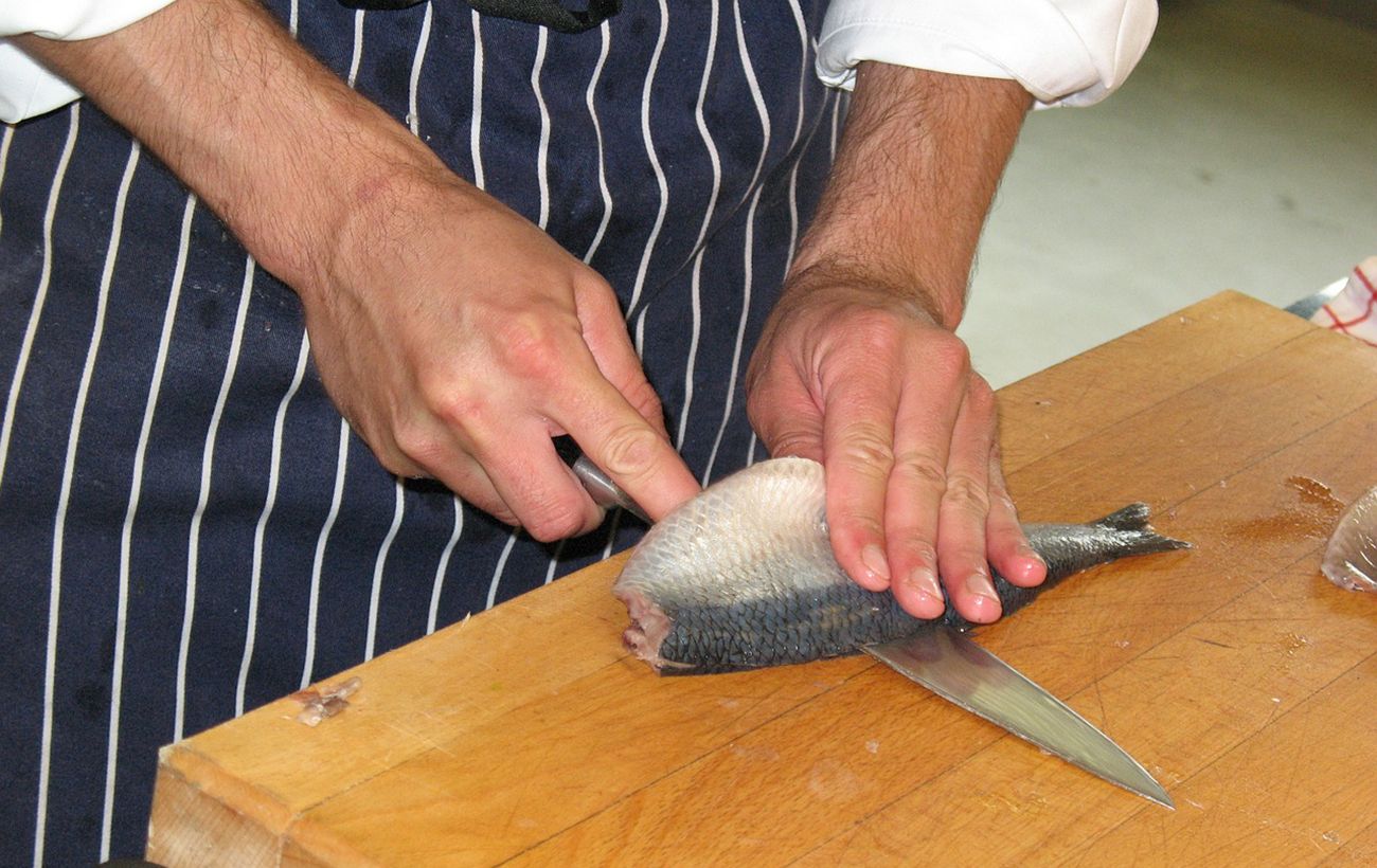Режущая доска: Используйте стабильную доску из пластика или дерева, чтобы удерживать селедку на месте и предотвратить скольжение ножа. Доска также поможет сохранить чистоту и порядок на кухне.