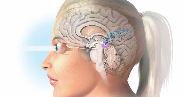 Шишковидная железа реагирует на изменения освещенности, переводя информацию об этом в сигналы, которые затем передаются в гипоталамус и другие части мозга. Гормон мелатонин вырабатывается и выделяется шишковидной железой в зависимости от этой информации, что влияет на циркадные ритмы и другие функции.