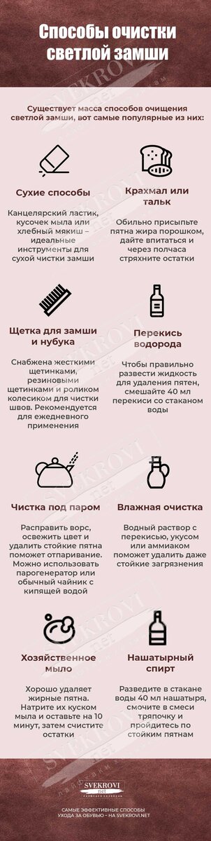 При выборе состава для чистки замши, следует обращать внимание на следующие факторы:
